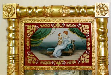 We found this mirror frame in the attic of our Wiscasset home. It was in very poor condition, had no glass or mirror, and needed a complete overhaul. It also had a police evidence tag indicating it was once part of a burglary (although I can't imagine why anyone would have taken it). Ordinarily, this type of object may not be worth the effort and expense of restoration, but since it has an interesting history for us, I took on the challenge. |