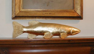 This carved wooden fish was gilded for a client in 2005. Approximately 30" long. |