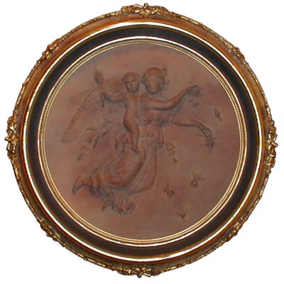 Framed plaster bas-relief ca. 1900. When purchased, the plaster was broken into several pieces, and the frame had been damaged and overpainted. For more information on this project, click here.