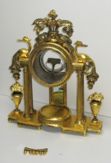 Sheraton mirror ca. 1835. Carved and gessoed ornament of grapes. The ornament was broken into several pieces (fortunately all present). This was reassembled, but no new material was added. Since this mirror had much of its original gilding still intact after the removal of layers of heavy gold paint, I elected to lightly water gild without removing the original material to the wood/gesso below. This revived the surface, while still maintaining signs of age and wear. (click on thumbnail to display larger image) |