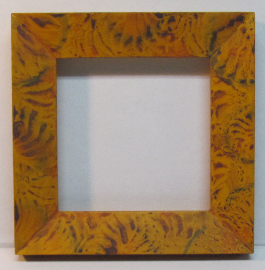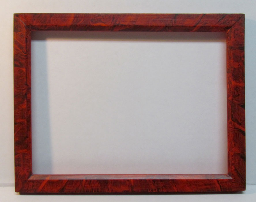 Dark brown "burl" over salmon, satin finish Profile: 1" flat bevel Back opening: 9" x 12" Stock No: GR112 Price: 32.00 |
