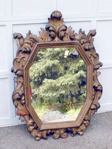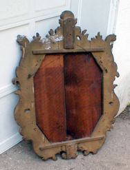 I purchased this at an auction several years ago. It was missing some of its carving, and as usual, damage to the gilding and gesso layers was "fixed" by covering it with bronze paint. I suspect this is a Nineteenth Century version of an earlier style, probably a souvenier of someone's European tour.