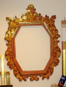Gilding is complete; it will be distressed and toned.and a reproduction mirror of blown glass will be installed. ![]() |