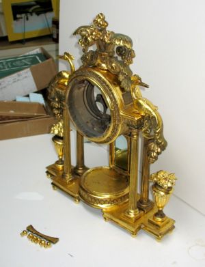 Repairs done, gilding on surfaces requiring it, touch-ups to other areas. Final steps remaining are toning various areas to match old work..
